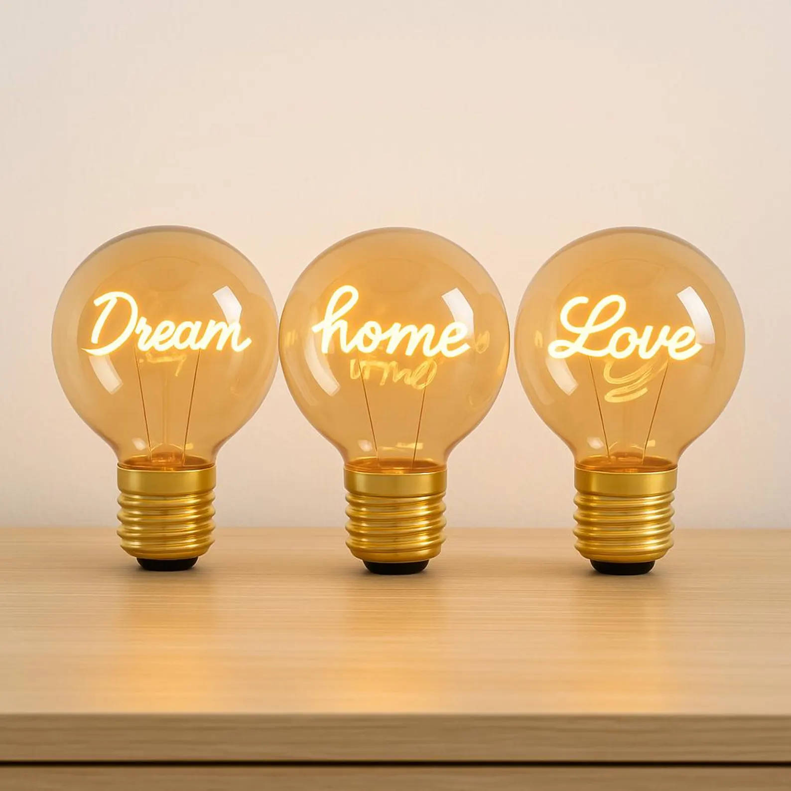 Stimmungsvolle LED-Glühbirnen mit Schriftzug – Dream, Home oder Love