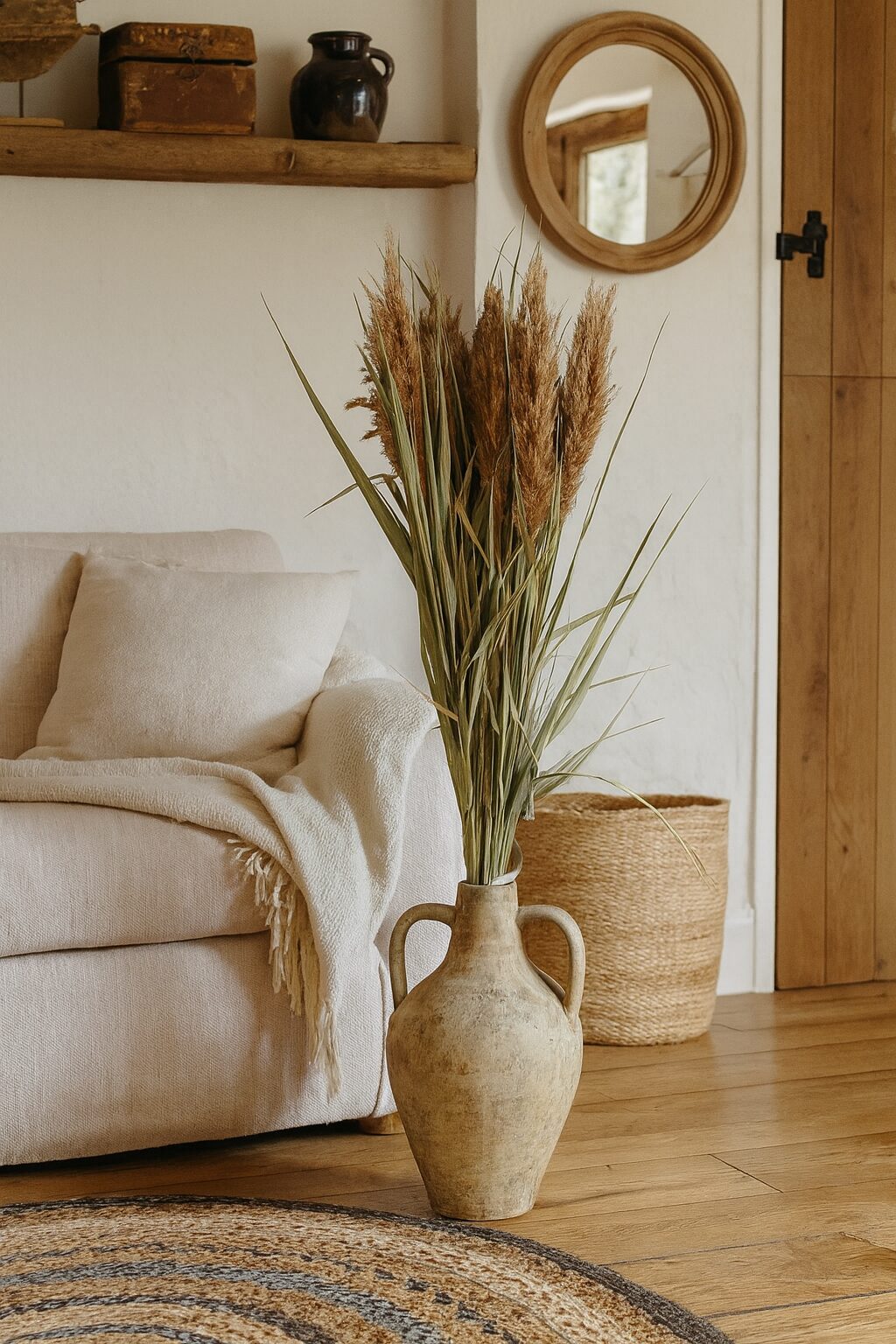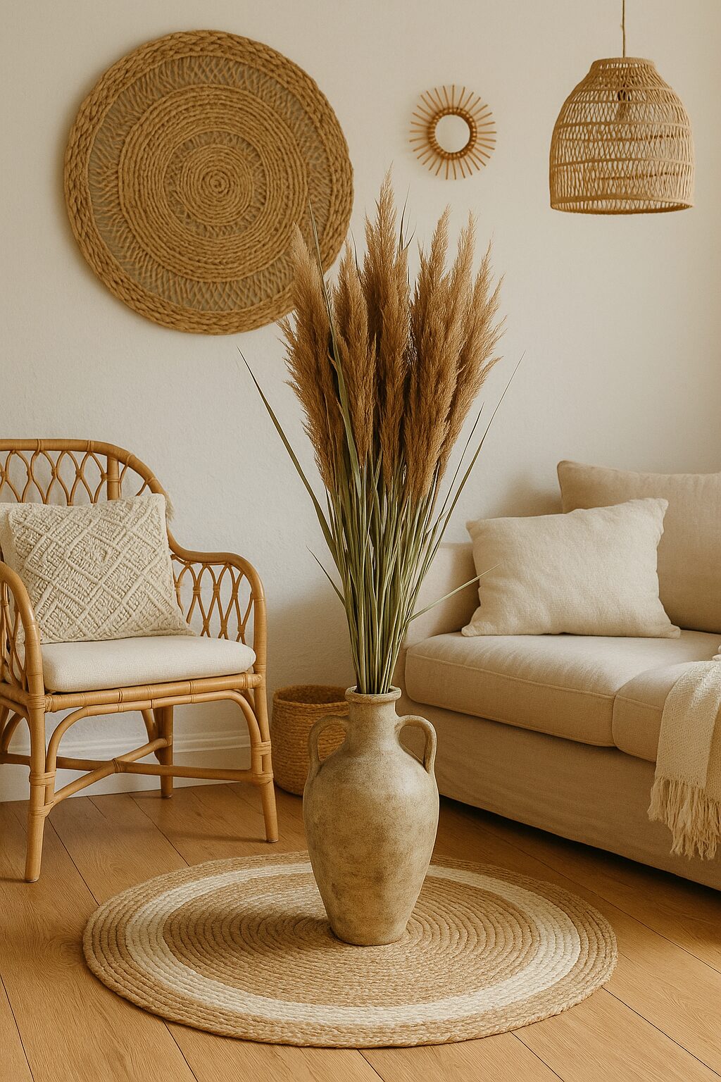 Wunderschöne, natürlich getrocknete Schilfgräser mit Blättern.