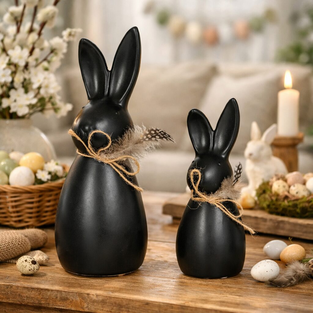 Schwarzer Osterhase aus Keramik – moderne Osterdekoration