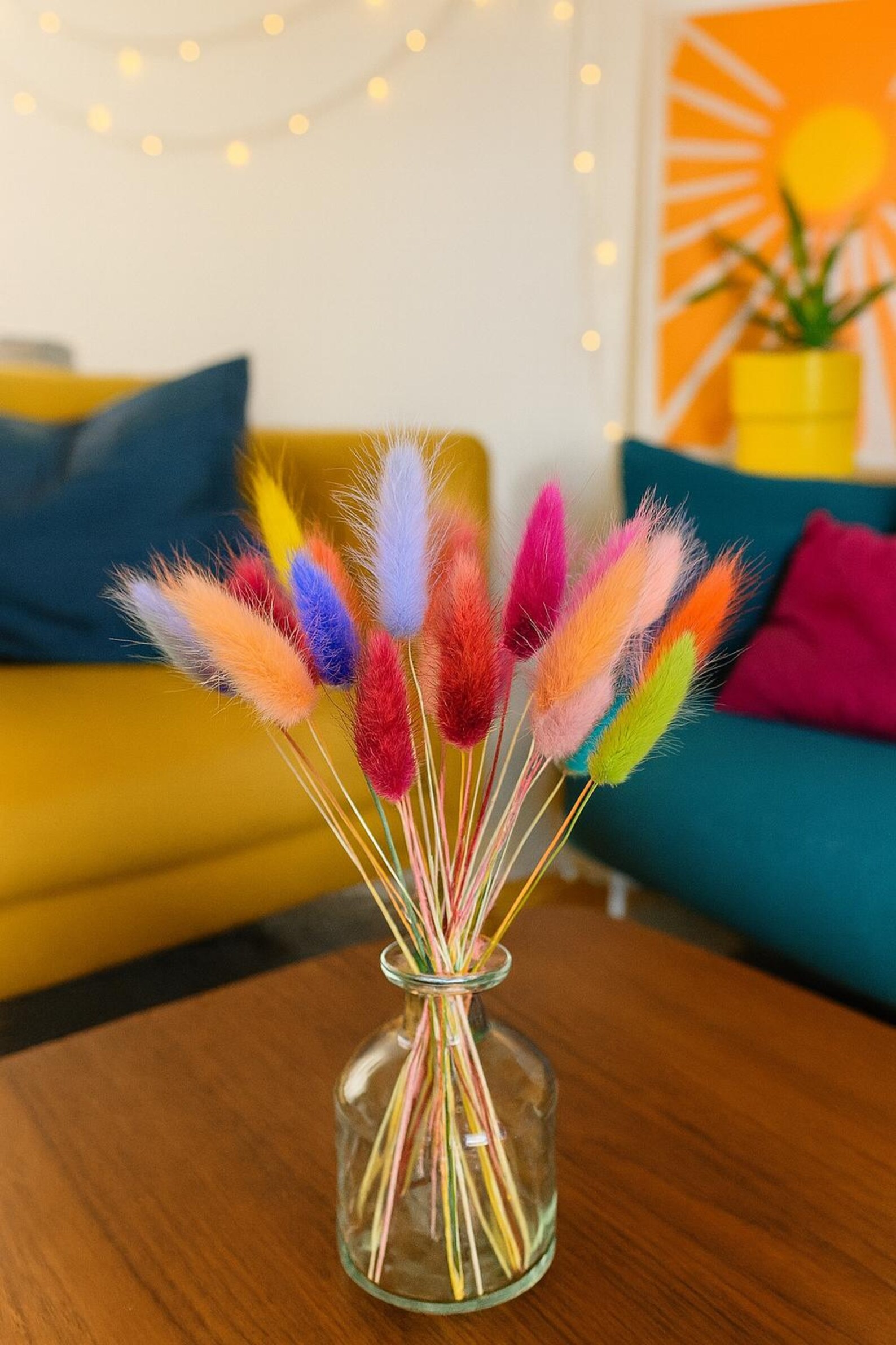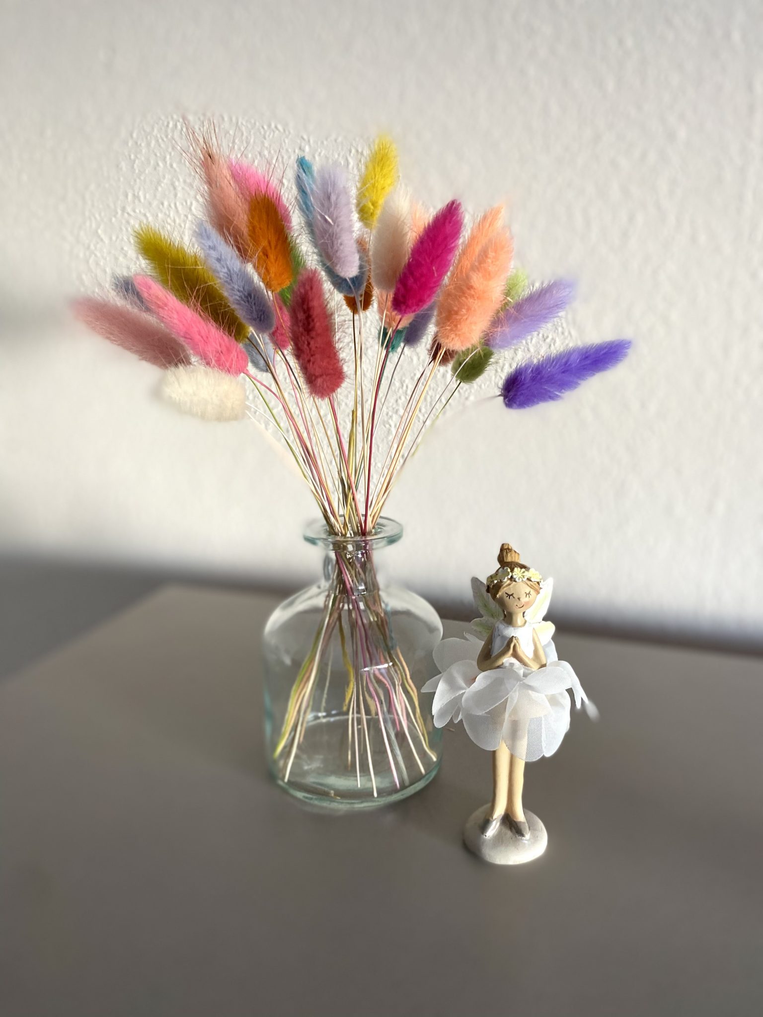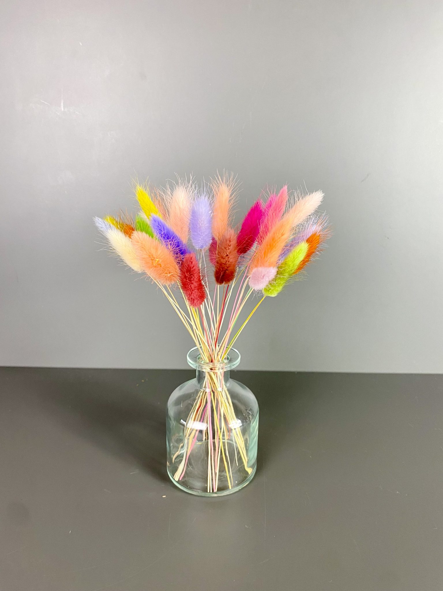 Regenbogen Lagurus Mix – Trockenblumen mit Vase