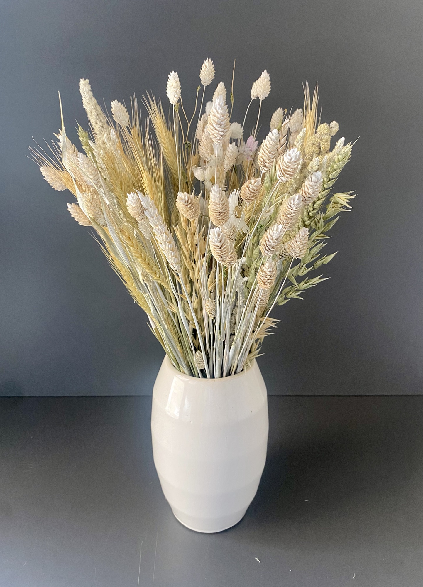 Das Set beinhaltet eine Auswahl an Trockenblumen, Gräser, die perfekt aufeinander abgestimmt sind. Alternativ können Sie die Blumen auch nach Belieben auseinandernehmen und neu arrangieren.